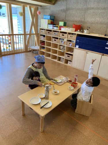 今から、みんなでお昼ごはん!パクパクごっくん。あーおいしい☆ たくさん食べて大きくなってね!