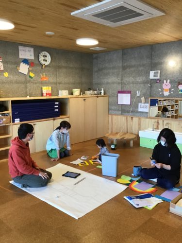 テーブルいっぱいに紙を貼ってお絵描き。描き描き☆ たくさん描いたよ!その後は、ペンのお片付けが気になる気になる・・・ 別の保育室で先生が作業しているのを知っていて見に行ったよ。 そこで先生の使っている物が気になる気になる・・・ なんだか一生懸命に考えて、これは何だと調べて触って。 興味のあるもので、きっと頭の中はフル回転です。