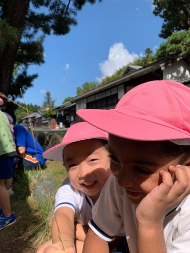 見てー!!先生が撮影するカメラにアピール!