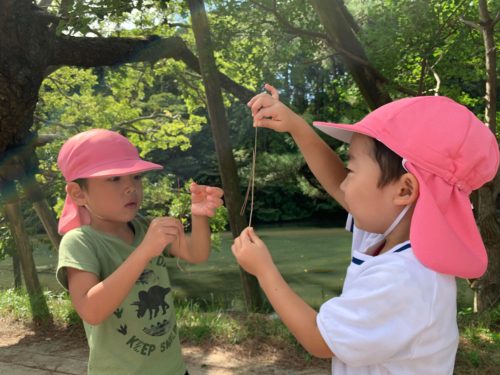 松の葉を使ってお友達と遊んだり、