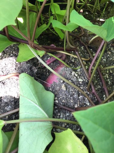 本のほいくえんで5月に苗植えをしたサツマイモ