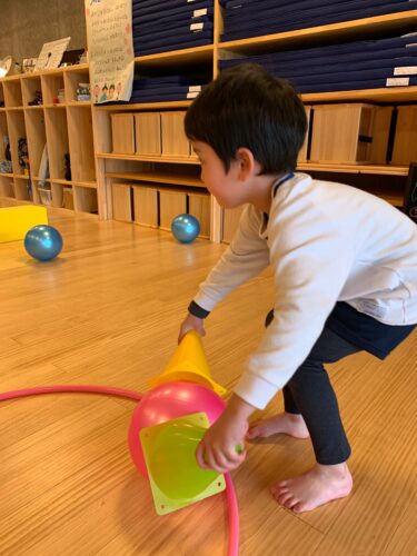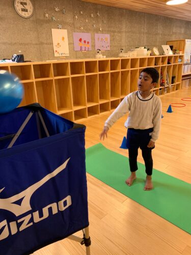 カゴにボールを投げ入れたり☆