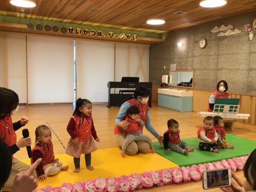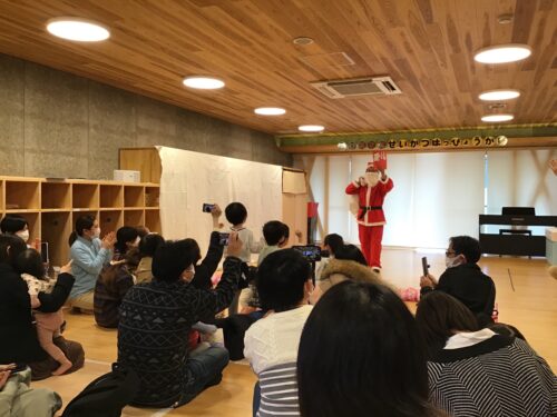 今日は、本のほいくえん クリスマス生活発表会の日です。 各クラス、いつもみんなでやっている 遊びを披露したり、大きいクラスの 子ども達は、何がしたいかみんなで 話し合ったりして、今日の日を迎えました。 お父さん、お母さんが見ている 中での発表は緊張もしたけど、 みんなのできる精一杯の姿を 見ていただくことができました。 こんなひが、きっと子ども達の 自信と成長につながるのだろうと 思います。 そして、なんと!!! サンタさんも来てくれて 一人づつにプレゼントを くれました☆ 緊張のとけた子ども達☆ またひとつ大きくなったね☆