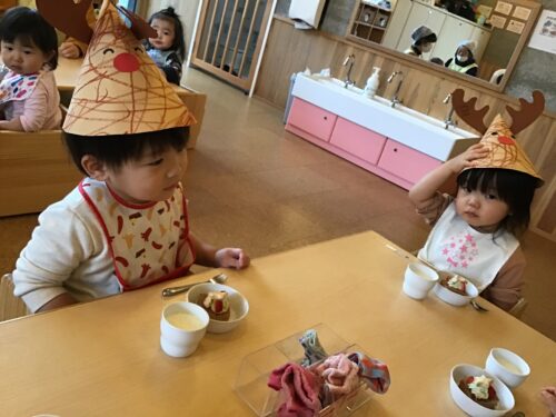 みんなで作ったクリスマスの帽子を