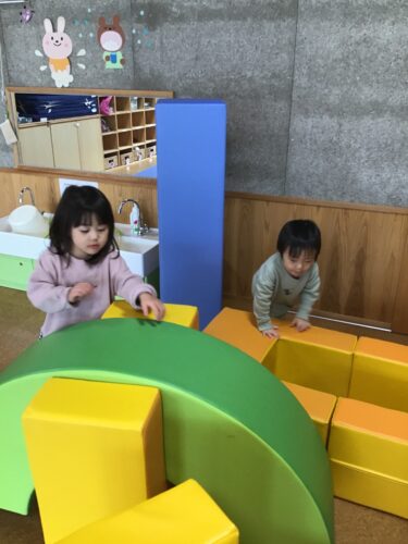 2021年も残すところ、 あとわずかです。 本のほいくえんは、年末の お休みに入ったお友達も 多くなり、今日はみんなで 合同で遊びます。 絵本のコーナーもみんなで一緒に☆ 先生に読んでもらったり、 お友達と一緒に見たり。 室内遊具で遊んでいる時も 子ども達で組み合わせを考えます。 どうしようかなー? 年末最後まで、楽しく遊びます。