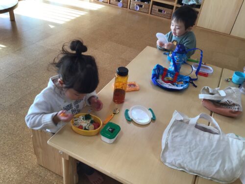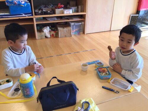 新年あけましておめでとうございます。 昨年は関係各所の皆さまには 大変お世話になりました。 本年もどうぞよろしくお願いいたします。 さて、子ども達は、昨日と今日は お弁当の日。 お家から持って来たお弁当に 子ども達は大喜び!! 『見て見てー!!おいしそうでしょ』 『わたしのお弁当かわいいでしょ』 『おいしそうー!食べていい?』 『いただきまーす!』 『デザートもあるね』 とても楽しそうな嬉しそうな声が 各クラスから聞こえてきます☆ 保護者の皆さま、新年の お忙しいところご協力いただきまして ありがとうございました。