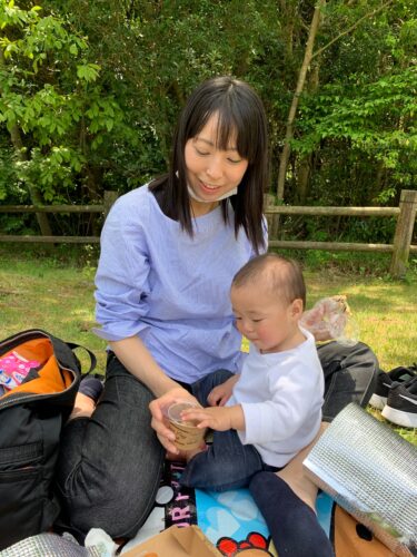 お昼には芝生広場でお弁当を食べました。
