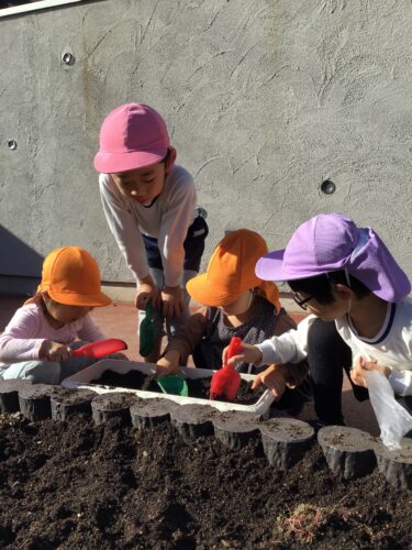 球根を植えているぞう組さん