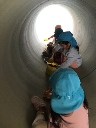こちらは、園庭の土管の中。