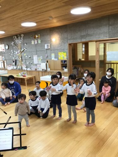 手づくり楽器を振ったり。
