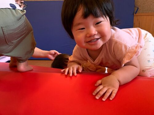 今日のひよこ組さん(0歳児クラス)とりす組さん(1歳児クラス)は、 合同で体を動かして遊びました。 ソフトマットを部屋全体に広げ、平均台を置いたり、 山を作ったりしてみんなが遊べるように準備しました。 さっそくソフトブロックで作った大きな山をみんな一生懸命登ります! 平均台を歩いたり、マットの山を全身を使ってよじ登ったり、 室内でしたが、しっかり全身を使って遊んだ子どもたちでした。