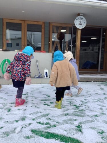 雪が積もる事を楽しみにしているぱんだ組のみんなです。