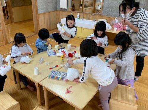 雪ではできなかったけれど、カワイイ雪だるまがたくさん完成しました!