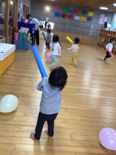 こちらは、スティックを使って風船を上にポンポン上げていきます。