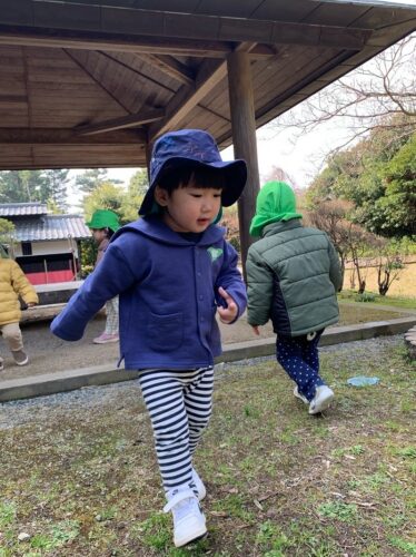 今日のりす組さん(1歳児クラス)は公園へ散歩に出かけました。
