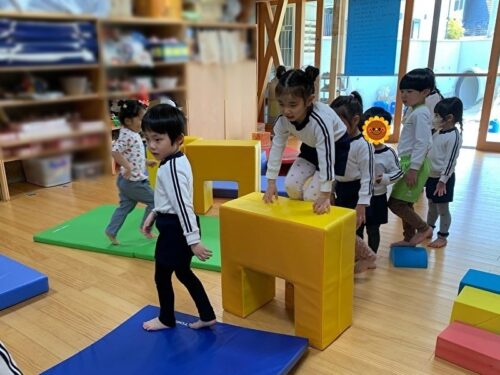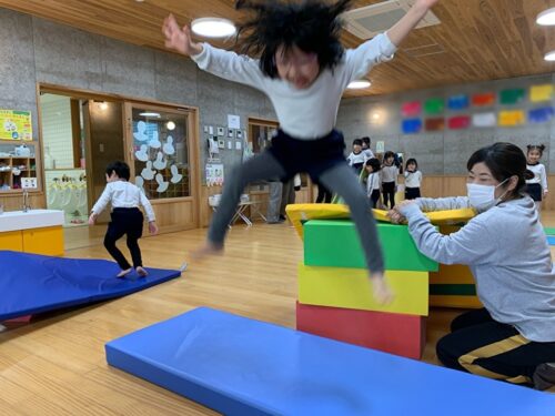 今日のぞう組さん(4,5歳児クラス)とぱんだ組さん(3歳児クラス)は合同で