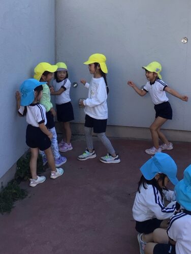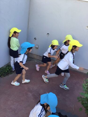 今日のぞう組さん(4,5歳児クラス)は夕方の自由時間に園庭で遊びました。 これは、”だるまさんがころんだ”をして遊んでいるところ。 ピタっと止まって、動いてはいけません。 真剣な表情がとてもかわいいです。 おにの近くまでやってきて、ピタリ! 動いてないよね?? タッチして逃げろ~ 懐かしい遊びですが、すごく盛り上がります。 ルールのある遊びで楽しめるのは、さすが年長さん。 ”だるまさんがころんだ”を楽しんだみんなでした。
