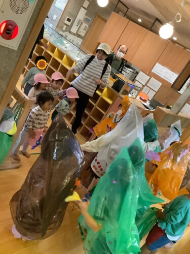 うさぎ組さん(1,2歳児クラス)も散歩から帰るとそこにはおばけさんたちが待ち構えていました。