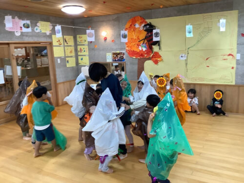その後も元気よく園庭を駆け抜けるおばけさんたち。