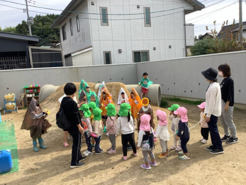 お菓子をもっていなかったうさぎ組さんたちも、可愛いおばけさんたちから”こちょこちょ”のいたずらを。