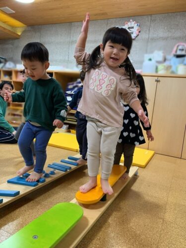 今日のうさぎ組さん(1,2歳児クラス)は朝の会が終わると 菜園コーナーで育てていた野菜の収穫をしました。 かわいらしいラディッシュが出来ていましたよ。 園庭では雪がちらつき寒かったため「寒いね~」そう言いながら、 みんな自然と集まってギュッとくっついていました。 なんだか微笑ましい姿です。 部屋に帰ってからは、平均台やマットを使って運動遊びをしました。 園庭でも、室内でもたくさん体を動かして遊んだうさぎ組のみんなでした。