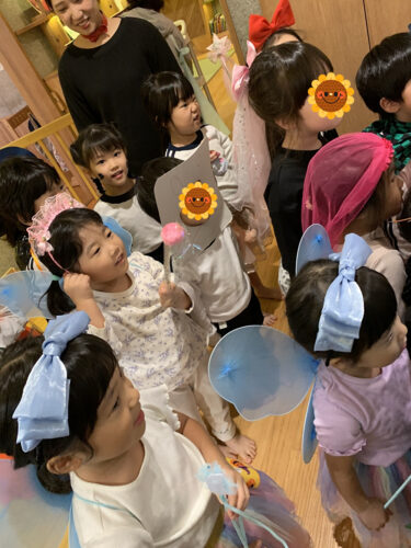 先生のアイデアで、みんなでハロウィンの仮装をしてお祝いしました。