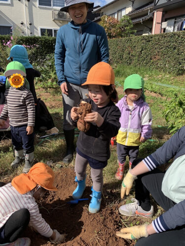 土の中から大きなおいもがたくさん出てきて、子どもたちは大喜び!